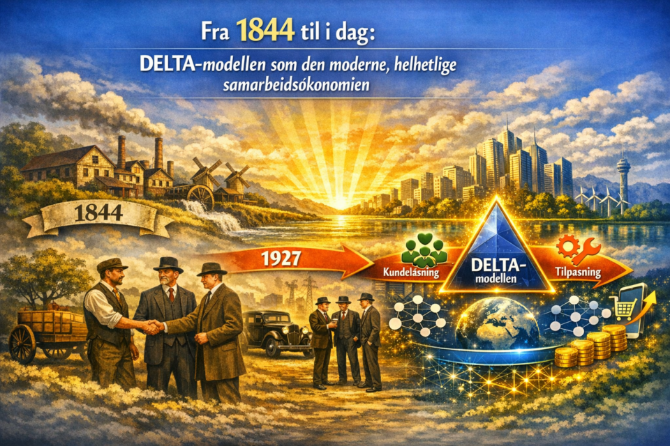 COOPs samarbeidsøkonomi fra 1800‑tallet og MLM‑selskapenes hierarkiske systemer fra 1930‑ og 40‑tallet har preget hvordan vi organiserer handel og verdiskaping. Begge modellene fungerer fortsatt, men bærer også tydelige begrensninger. DELTA‑modellens sirkeløkonomi bygger videre på historien, men fjerner ulempene og beholder fordelene. Der COOP-modellen gir medeierskap i et samvirkelag og kjøpsutbytte på egen handel, gir vi medeierskap i et aksjeselskap med personlige nettbutikker i ett felles varehus. Vi handler i hverandres butikker og mottar aksjeutbytte av omsetningen – enkelt, transparent og i tråd med tradisjonell verdiskaping.